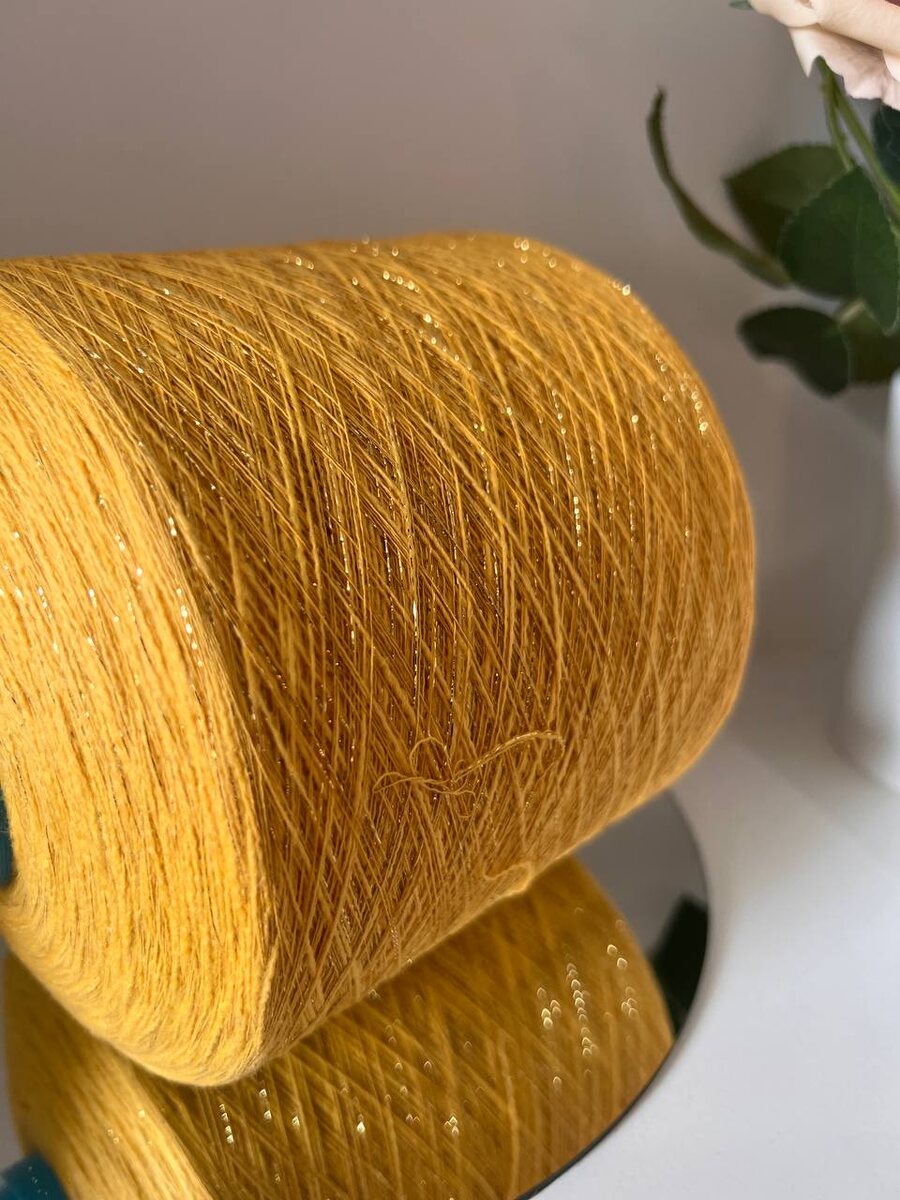 1300 м Хлопок80/люр 20 Тонкий фламе Желтый с золотым От 200 г 900₽/0,2 кг