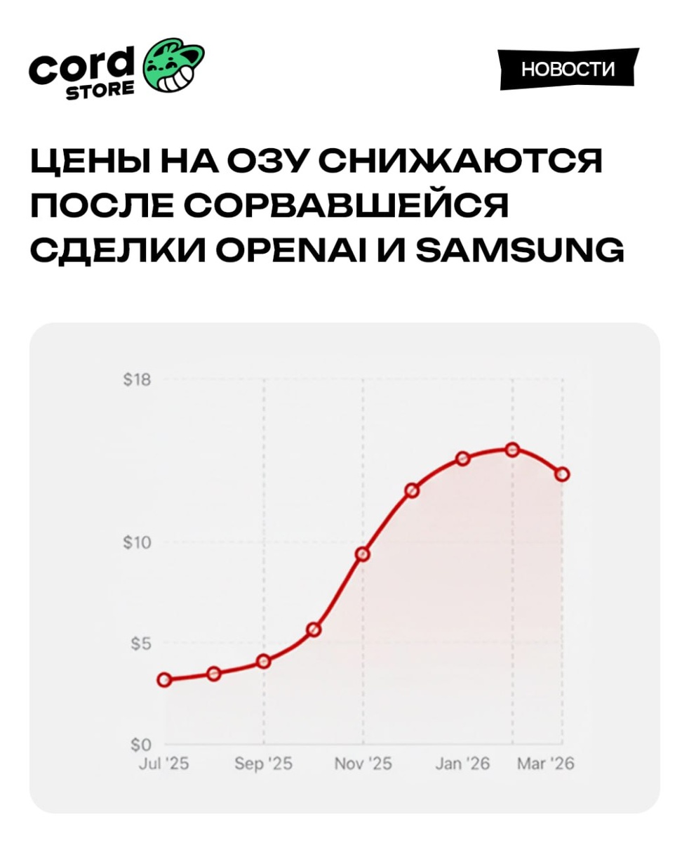 π Π¦Π΅Π½Ρ Π½Π° ΠΎΠΏΠ΅ΡΠ°ΡΠΈΠ²Π½ΡΡ ΠΏΠ°ΠΌΡΡΡ Π½Π°ΡΠ°Π»ΠΈ ΡΠ½ΠΈΠΆΠ°ΡΡΡΡ ΠΏΠΎΡΠ»Π΅ ΡΠΎΡΠ²Π°Π²ΡΠ΅ΠΉΡΡ ΡΠ΄Π΅Π»ΠΊΠΈ OpenAI