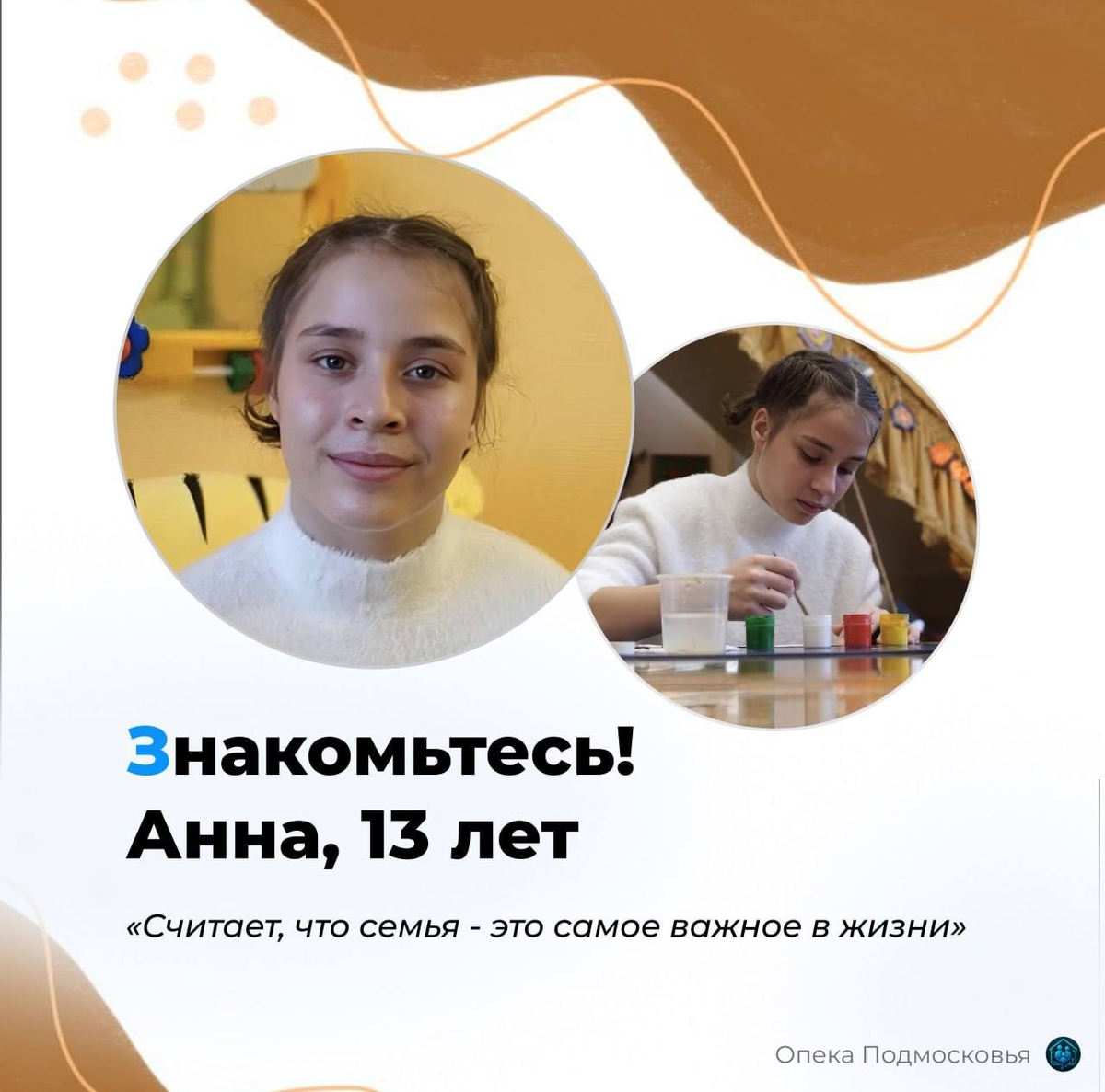 Настоящие чудеса случаются там, где есть семья! Анна поражает своей волей и умением преодолевать любые преграды. Но даже самому сильному человеку нужно место, где можно просто быть собой — быть ребенком. Аня мечтает о родителях, которые станут её опорой, поддержкой и самыми близкими друзьями. Анна - добрая, очень любознательная, активная и доброжелательная. Она особый ребенок и нуждается в сопровождении взрослых. Аня общительная, принимает активное участие в мероприятиях. В общении с взрослыми часто проявляет инициативу, с детьми не конфликтует, со всеми дружит. Она может подолгу обсуждать интересующие ее вопросы. Анна посещает школу, прилежно занимается на уроках, знает буквы, переписывает текст с книги, считает до 50, дальше может путаться. У Ани высокая мотивация к занятиям и познанию нового. Она знает все цвета и оттенки, понятия величины и формы у нее полностью сформированы. Аня владеет знанием последовательности дней недели, текущих месяцев, сезонов. Хорошо запоминает стихи, заня