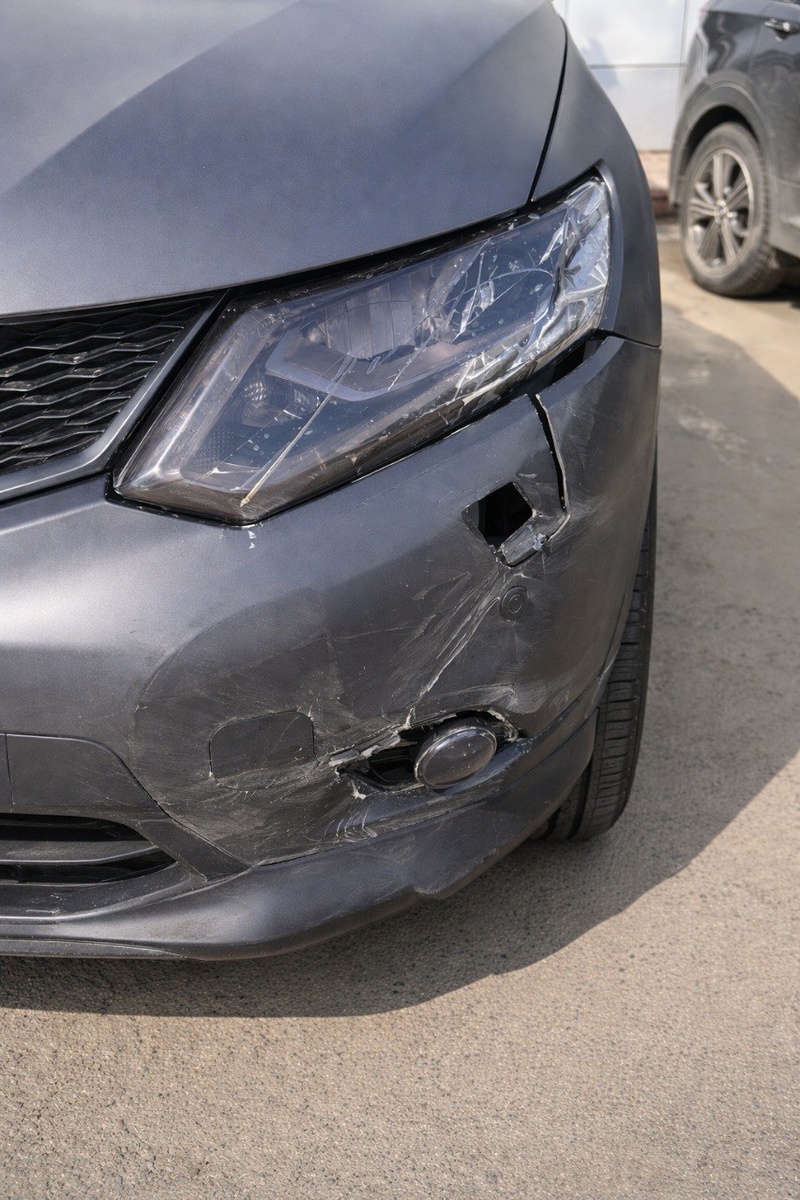 Этот Nissan X-Trail приехал к нам уже на эвакуаторе. До этого был удар в передний бампер слева (посмотрите на фото). Машина вроде бы оставалась на ходу, владелец еще денек поездил, а на следующее утро автомобиль просто не завелся.