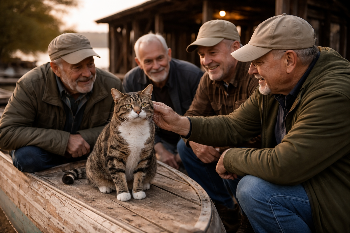 Осенью станция пустеет быстро. Лодки вытаскивают на берег, настилы мокнут, ветер гуляет так, будто ему одному тут всё можно. Но в тот год пустота наступала как-то мягче. Потому что под сараем жил кот, а рядом с ним — мужчины, которым он, сам того не планируя, чуть-чуть вернул человеческий голос.