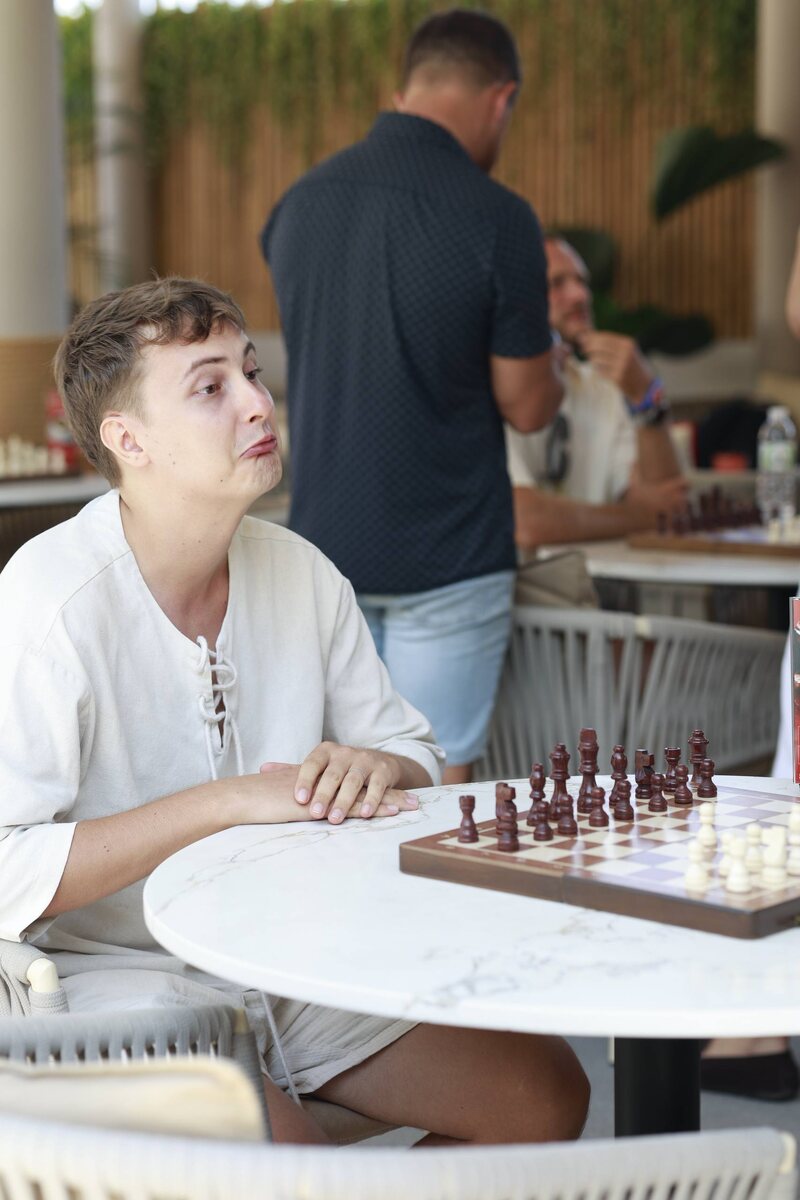 Первая партия была сыграна с Роем — он занял второе место на турнире. В момент игры возникла мысль о том, что зря я вообще сюда пришёл. Потом немножко разыгрался. Призовое место не занял, но участие вновь возбудило интерес к шахматам. Я начал играть в шахматы примерно в 10 классе. Для меня это скорее хобби, чем серьёзное занятие или спорт.