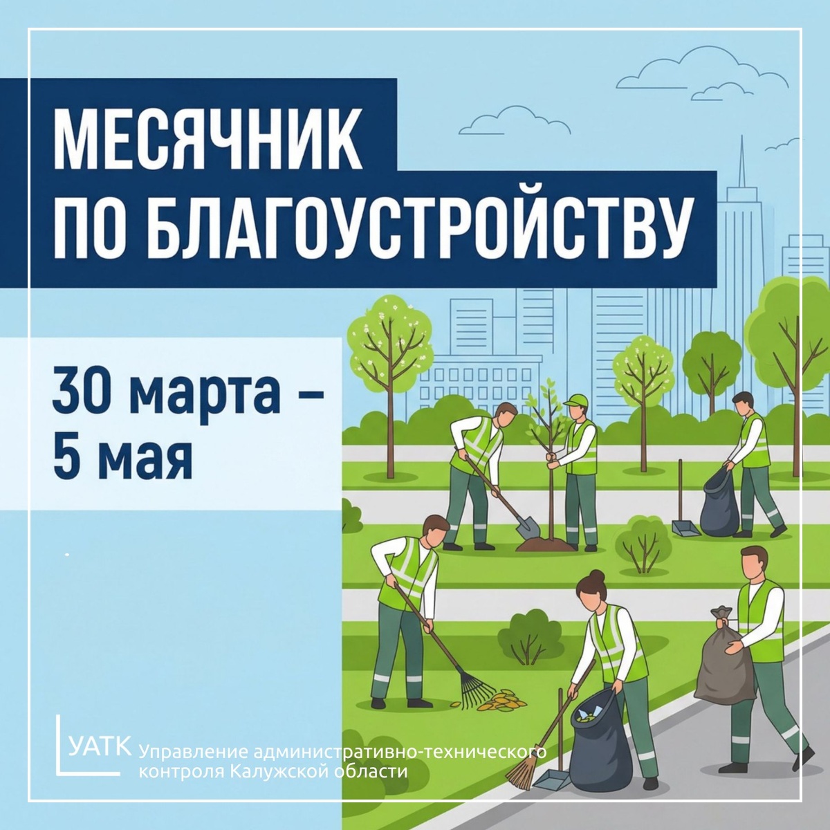 ➡️В Калужской области с 30 марта по 5 мая по инициативе губернатора Владислава Шапши проводится месячник по уборке и благоустройству территорий населенных пунктов региона. Особое внимание в рамках месячника уделяется санитарной очистке территорий, приведению в порядок общественных пространств и наведению порядка в жилых районах. Наше управление ежегодно принимает активное участие в субботниках. Не станет исключением и текущий год: сотрудники выйдут на уборку территорий в областном центре, а также в районах области, где расположены территориальные отделы управления. ❗Призываем граждан, присоединиться к субботникам и принять активное участие в мероприятиях месячника. Совместными усилиями обеспечим чистоту и порядок в наших населенных пунктах. #Калужскаяобласть #УАТК40 #УАТК