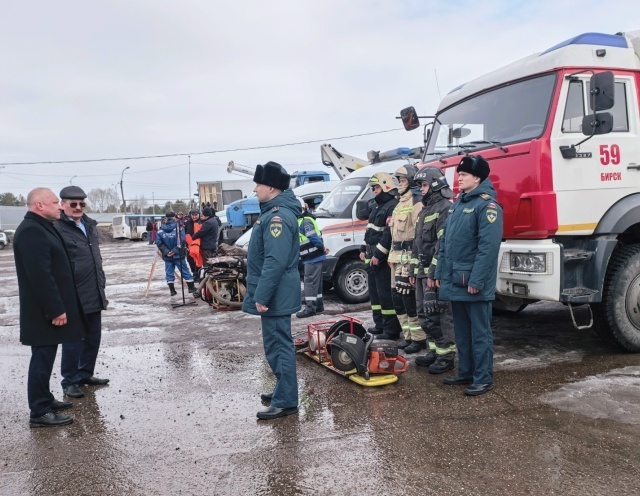 На территории Бирского АТП прошел традиционный смотр сил и средств, задействованных в противопаводковых мероприятиях В этом году вскрытие реки Белой ожидается на неделю-две раньше средних многолетних сроков. Критического уровня воды не прогнозируется. Однако необходимо быть готовыми к любому неблагоприятному сценарию погоды. Смотр сил и средств, привлекаемых к ликвидации возможной чрезвычайной ситуации во время половодья,—одно из главных подготовительных мероприятий города и района к весеннему паводку. Прежде всего оно позволяет оценить реальную к нему готовность экстренных служб и предприятий коммунального хозяйства. В ровную линейку на территории автотранспортного предприятия выстроилась спецтехника. Коллективы подготовили к презентации оборудование для аварийно-спасательных, восстановительных работ и эвакуации людей в случае ЧС. Свои команды представили водоканал, городские и районные электрические сети, тепловые сети, аварийно-газовая служба, пожарно-спасательная часть, скорая помо