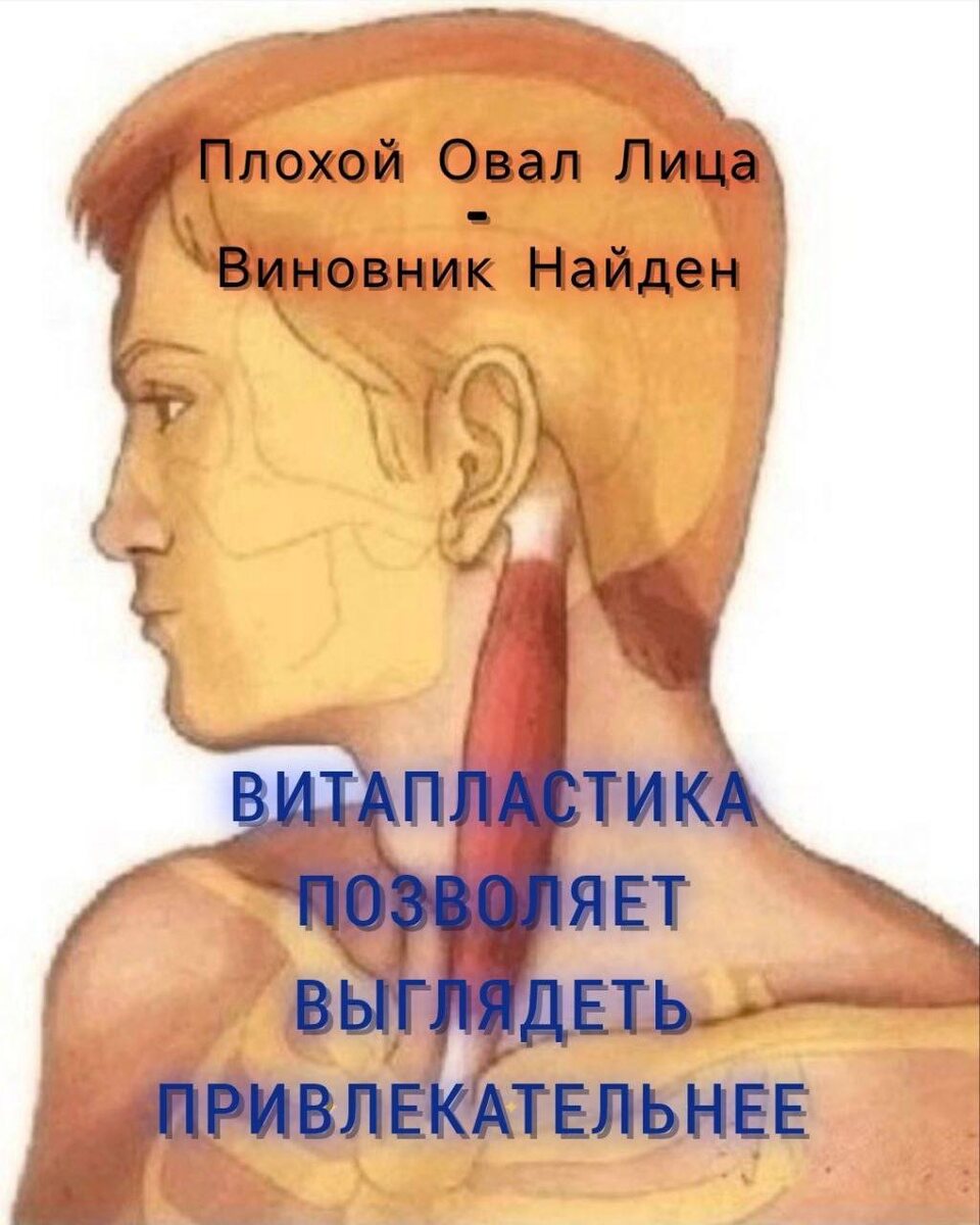 ПЛОХОЙ ОВАЛ ЛИЦА - НАЙДЕН ВИНОВНИК! 🆘 Проблемы с нижней частью лица – Вторым Подбородком , уплывающим овалом знакомы очень многим не понаслышке. Каждая из нас противостоит этой напасти по-своему – кто-то делает гимнастику, кто-то супер-маски, кто-то подтяжки… Часто обычные способы результата не приносят, или он не достаточен. И зачастую в этом виновата всего одна мышца с длинным странным названием –➡️грудинно-ключично-сосцевидная ❗Вы сразу найдете ее, если повернете голову в сторону – она сразу выступает на передне-боковой поверхности шеи толстым валиком. ❗Эти мышцы при одностороннем сокращении наклоняют голову в свою сторону, одновременно лицо поворачивается в противоположную сторону. Живи без Боли Живи в КаЙфФ