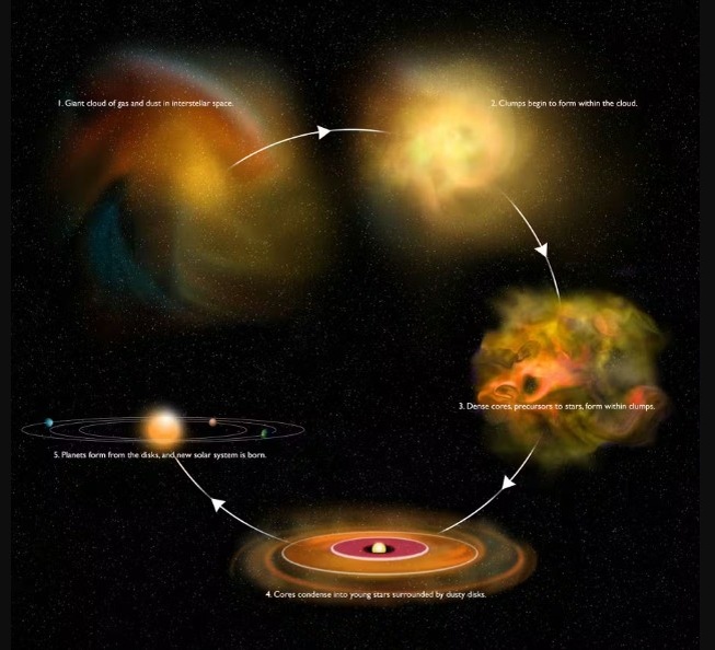 Таким образом, если исходное облако вращалось с периодом ∼1 млн лет (типично для межзвёздных облаков), то протозвезда получает период ∼1,6 суток. Это идеально согласуется с нашим расчётом начального периода Солнца (1,65 суток).