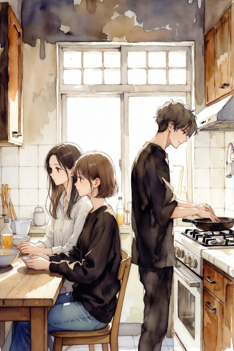 Иван стоял у плиты, не спал. Возможно, услышал машину или шаги. Он держался в стороне, предоставляя нам пространство, но оставаясь рядом. В руках у него была сковорода — он готовил яичницу, машинально, по привычке, сформировавшейся за эти дни..