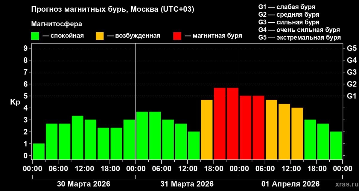 Воронежцев предупредили о приближении магнитной бури, которая накроет регион в последний день марта и в начале апреля. По данным лаборатории солнечной астрономии ИКИ РАН и ИСЗФ СО РАН, геомагнитная активность резко возрастет после 18:00 во вторник, 31 марта. Своего пика возмущения в магнитосфере достигнут в ночь на среду, 1 апреля. Уровень бури почти вплотную приблизится к отметке G2 (средняя). После 6:00 утра геомагнитная обстановка начнет постепенно стабилизироваться. Причиной возмущений стала первая с 4 февраля солнечная вспышка высшего класса X, зарегистрированная в понедельник, 30 марта. Такие события способны вызывать ощутимые геомагнитные последствия на Земле. В период магнитных бурь метеозависимые люди могут испытывать снижение работоспособности, головную боль, перепады настроения. Врачи рекомендуют в эти дни соблюдать режим сна и отдыха, больше гулять на свежем воздухе и не перегружать организм физическими нагрузками.