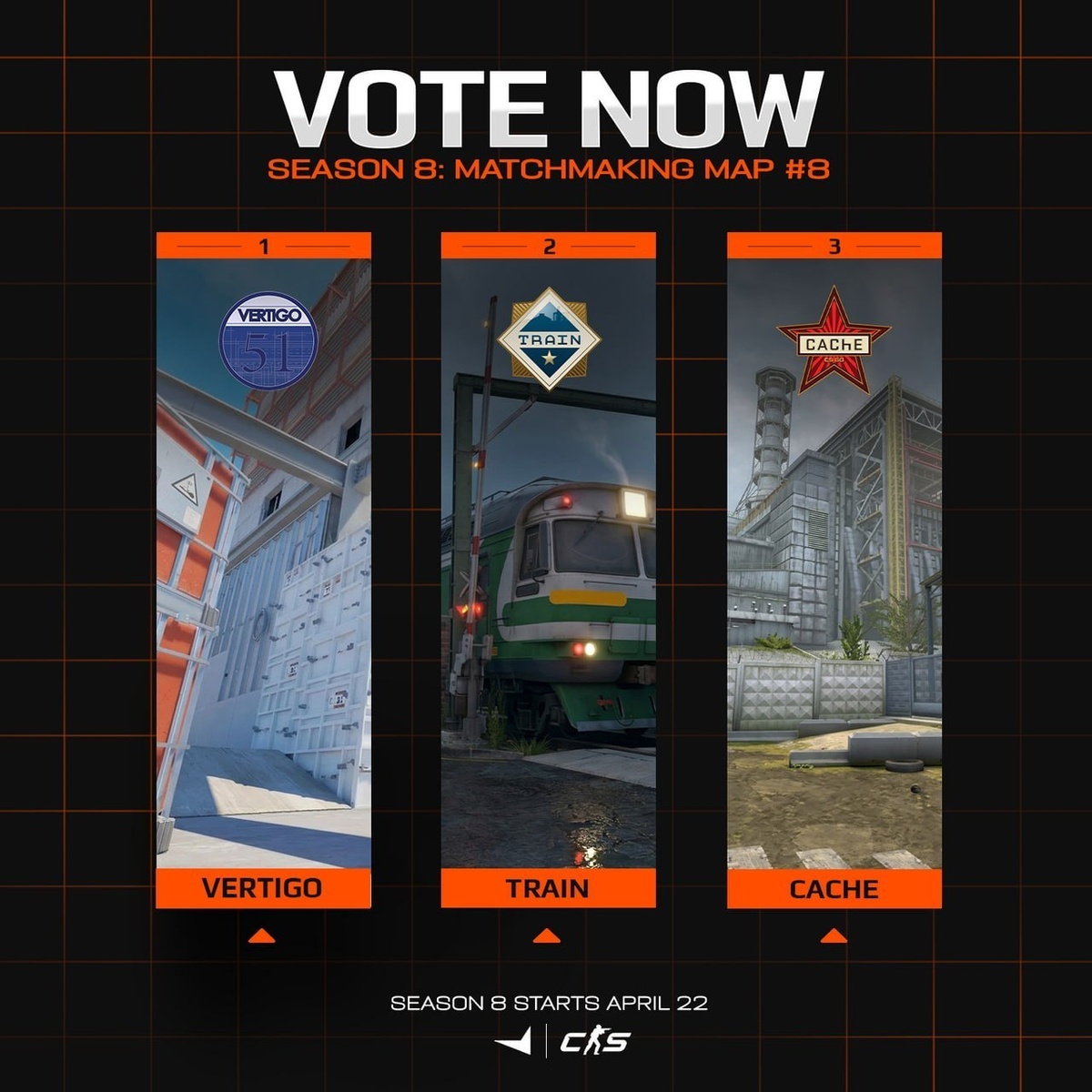 π¬π§ FACEIT Π·Π°ΠΏΡΡΡΠΈΠ»ΠΈ Π³ΠΎΠ»ΠΎΡΠΎΠ²Π°Π½ΠΈΠ΅ Π·Π° Π²ΠΎΡΡΠΌΡΡ ΠΊΠ°ΡΡΡ Π² ΠΌΠ°ΠΏΠΏΡΠ»Π΅ β Π² ΡΠΏΠΈΡΠΎΠΊ Π²ΠΎΡΠ»ΠΈ Vertigo, Train ΠΈ Cache. ΠΠΎΠ²Π°Ρ ΠΊΠ°ΡΡΠ° ΠΏΠΎΡΠ²ΠΈΡΡΡ Π² ΡΠ»Π΅Π΄ΡΡΡΠ΅ΠΌ ΡΠ΅Π·ΠΎΠ½Π΅, ΠΊΠΎΡΠΎΡΡΠΉ ΡΡΠ°ΡΡΡΠ΅Ρ 22 Π°ΠΏΡΠ΅Π»Ρ. π Esports.ru | CS