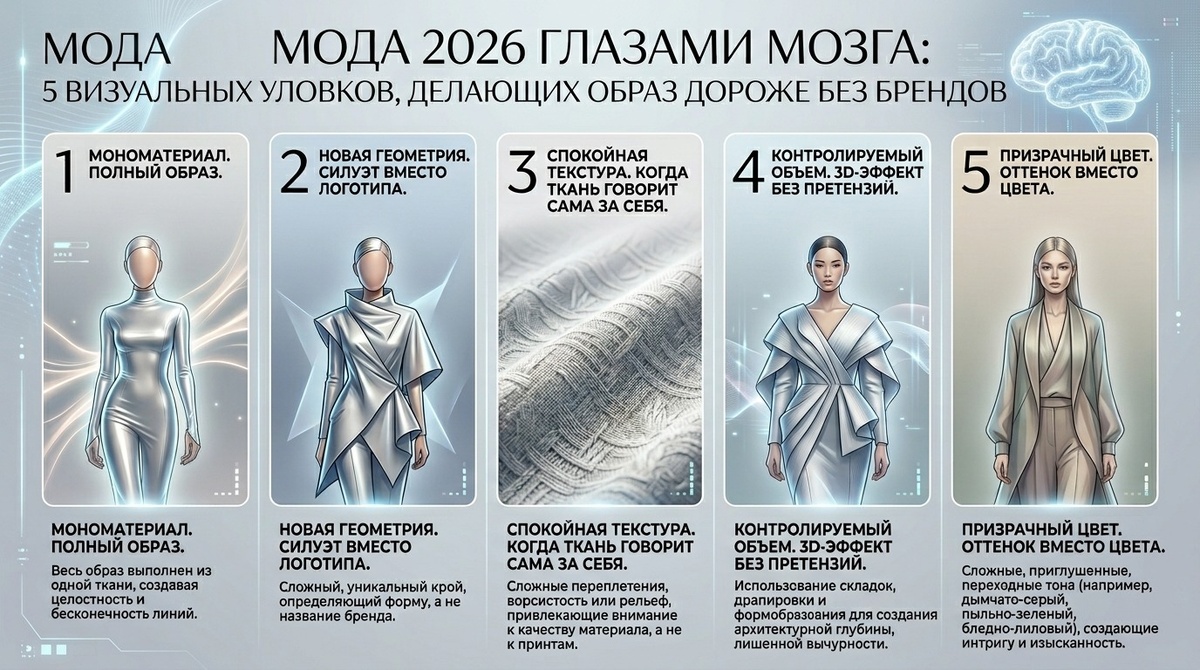 Вы когда-нибудь замечали, что иногда человек в безымянном пальто выглядит дороже, чем в логотипной куртке? Мозг считывает не ценник, а определённые сигналы. И в 2026 году эти сигналы стали ещё тоньше. Я как психолог часто наблюдаю за людьми на улицах. И могу сказать: ощущение «дорого» создаётся не брендом, а визуальной целостностью. Это игра с восприятием, где правила диктует наш собственный мозг, а не модные журналы.