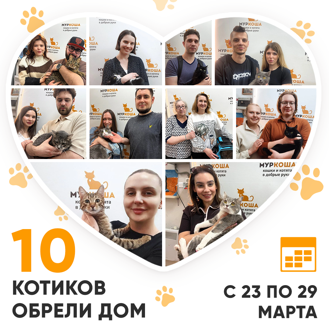 🥳 Итак, за прошедшую неделю домашними и любимыми стали 10 котиков!