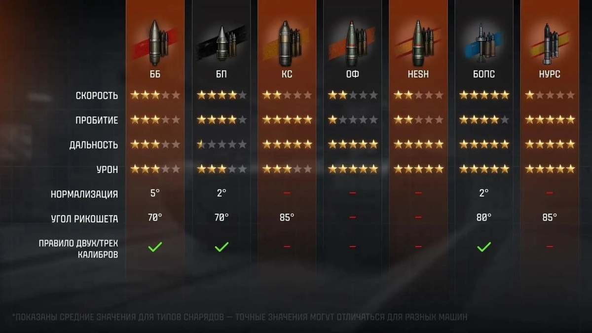 🎯 Чтобы подготовиться к Полевым испытаниям мы подготовили шпаргалку по снарядам и напомним как механики СЕЙЧАС работают в Мире танков? ⚪ Бронебойные (ББ) Самый сбалансированный тип. Имеют отличную нормализацию (5°), что помогает пробивать наклонную броню, и могут проходить сквозь разрушаемые объекты и экраны (теряя при этом бронепробитие) • Рикошет: при угле вхождения 70° и более. • Нюанс: теряют бронепробитие с расстоянием. ⚫ Подкалиберные (БП) Обладают высокой скоростью полёта, что упрощает стрельбу на опережение. • Нормализация: низкая (всего 2°), поэтому хуже работают по сильным наклонам. • Нюанс: теряют пробитие на дистанции сильнее, чем ББ. 🟡 Кумулятивные (КС) Имеют высокое пробитие, которое не падает с дистанцией. • Рикошет: только при очень острых углах (более 85°) • Слабость: взрываются при контакте с любым препятствием (забор, гусеница, экран), теряя пробивную силу. 🟠 Осколочно-фугасные (ОФ) Обладают низким пробитием, но могут нанести урон даже без пробития брони. • Пр