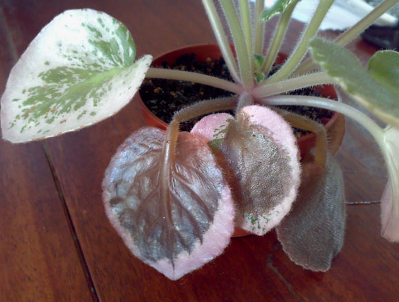 Бактериальные гнили — одно из самых серьезных заболеваний сенполий. В отличие от грибковых инфекций, бактериальные поражения развиваются стремительно и часто приводят к гибели растения в течение нескольких часов. Основными возбудителями являются бактерии, которые продуцируют ферменты, разрушающие клеточные стенки растения и вызывающие водянистое разложение тканей . Эти патогены широко распространены в окружающей среде и могут сохранять жизнеспособность в почве, на инструментах и даже на поверхности здоровых растений в латентном состоянии. Первые признаки бактериальной гнили легко распознать, если знать, на что обращать внимание. Самый первый признак — потеря тургора у растения на нижних листьях, ткани листьев могут становиться прозрачными, водянистыми, словно пропитанными маслом. В отличие от грибковых заболеваний, при бактериальной гнили отсутствует видимый мицелий или споры, а граница между здоровой и больной тканью часто размыта. На поздних стадиях стебель у основания становится чё