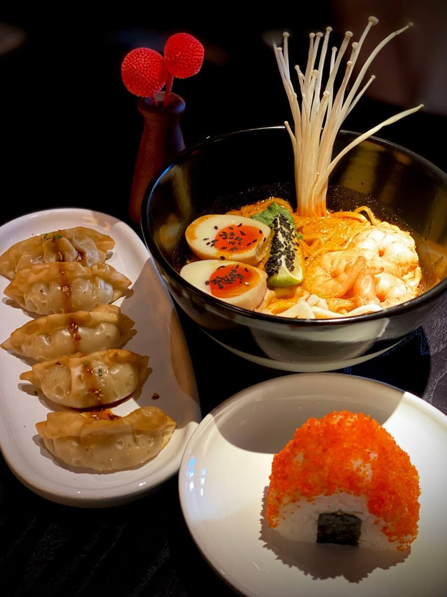 🥳 Два зала, стиль узнаваем, хостесс сразу рассказала про «тайную комнату» для фотосессий. Миниманьяк осталась очень довольна, попросила заказать пиратский корабль с роллами из спешл-меню «Большой куш», чтобы получить лимитированную бандану. Отгадайте, кто теперь самый модный носит ее поверх черно-белой сумочки от Tasty coffee😎 В общем, место отличное, б/а коктейли, роллы, рамены и онигири как всегда на высоте. Команда просто топ, так стараются, такие приветливые! Сегодня стартовала коллаба с Сбер Прайм, наверняка, в воскресенье мы опять пойдем туда на разведку, судя по фото, всё очень вкусно😁 Углеводные окна просто нараспашку 🪟 📍Москва, Бауманская, 56/17с1
