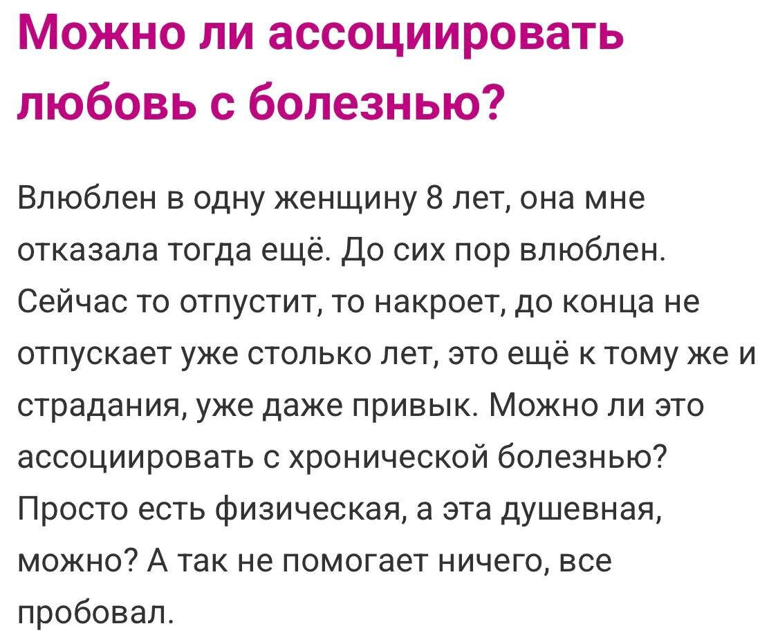 Чувак залипает на отказавшей 8 лет назад. Круг: отпускает — накрывает — повтор. "Хроническая душевная болезнь?" Ха, нет — это сбой в матрице размножения, а я, асексуал, смотрю со стороны и ржу: секс-привод выключен, а движок гудит вхолостую! 📉 Природа забыла твой тумблер самосохранения, но объекта нет, ресурсы на ветер. Для меня любовь — опциональный софт, а не вечный вирус. 👀 "Всё пробовал, не помогает". Что именно? Посидел, поплакал, форум почитал? Имитация, брат! Как 150 кг не скинешь "зал в пятницу может быть". Нужна система: ежедневный граундхог-день без пауз. Асексуал хакнул это давно — мозг занят кодом/фото/SEO, не романтикой. 😏 Лечи голову как железо: грузи 24/7 работой, спортом, новыми людьми, задачами. Ни секунды на "ту плёнку"! 🎞🚫 Усталость — лучший антивирус. Я вот годами без "душевных мук" — фриланс, камера, блог, и ноль драм. 🧠 Вывод