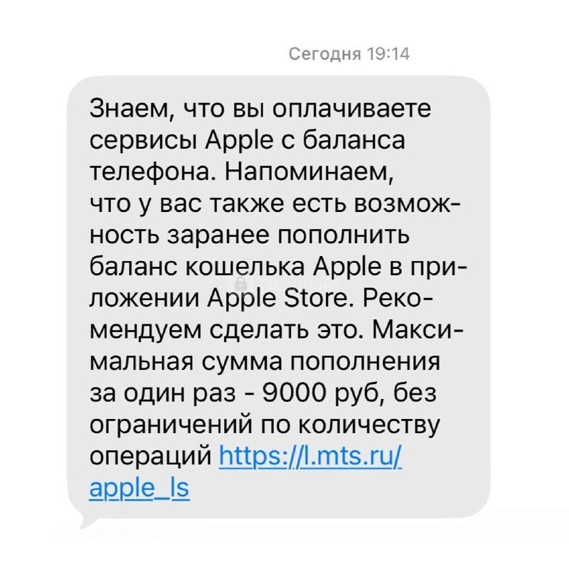 Операторы уже начали предупреждать об отключении оплаты Apple-сервисов с мобильного баланса — Билайн и МТС рассылают соответствующие SMS