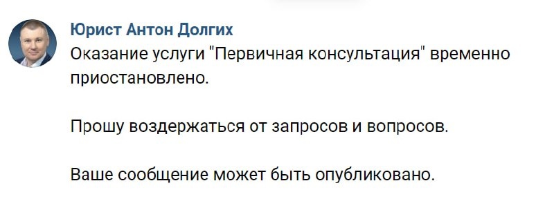 Оказание услуги "Первичная консультация" временно приостановлено.