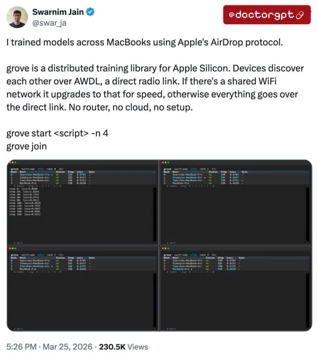 Разработчик создал сеть из MacBook для обучения нейросетей через AirDrop — проект ускоряет вычисления в несколько раз