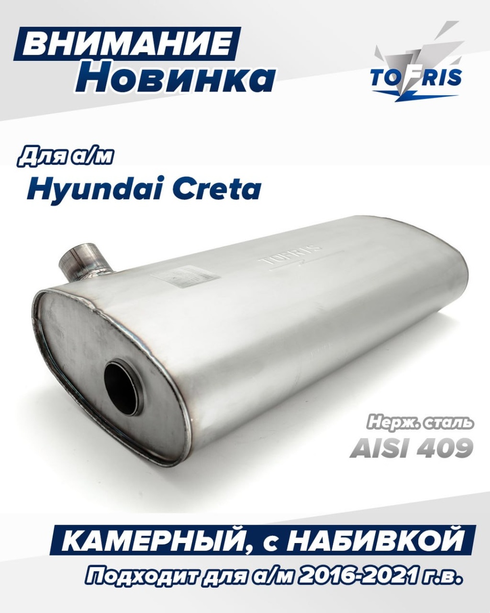 Оригинал дорогой, а дешевые аналоги из простой стали ржавеют за сезон. Пора разорвать этот круг! https://tofris-shop.ru/catalog/glushiteli_po_marke_avtomobilya/product-glushitel_hyundai_creta_analog_265kh134kh600kh51_kamernyy_s_nabivkoy_aisi409/ Представляем наш новый продукт: универсальный аналог глушителя идеально подходит для Hyundai Creta выпуска 2016-2021 годов. Отличается высокой надежностью и длительным сроком службы. Основные характеристики: Размеры корпуса: — Ширина: 265 мм — Высота: 134 мм — Длина: 600 мм Вход и выход: — Диаметр трубы: 51 мм (одинаковый для входа и выхода) В чем наше главное преимущество? Конструкция: — Внутренняя конфигурация представляет собой лабиринтно-камерный тип, что обеспечивает эффективное снижение шума и вибраций. — Оснащен премиум-класса набивкой из стекловолокна E-Glass для дополнительной шумоизоляции и долговечности. Материал: — Полностью изготовлен из высококачественной нержавеющей стали AISI 409, что гарантирует прочность и устойчивость