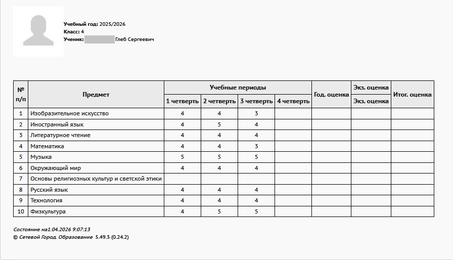 Тимофей учится стабильно на совесть. Его подгонять нет нужды, напротив, если сыну что-то требуется в плане учёбы, то он будет напоминать нам с папой до тех пор, пока плешь на наших головах не засияет) Отсюда и отличные оценки:
