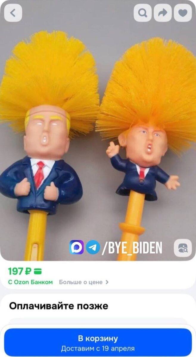 Туалетный ершик в виде Трампа обнаружил админ на просторах популярного российского маркетплейса. Подойдет в качестве ответного подарка американским коллегам? 👍«БайБайден» в МАХ