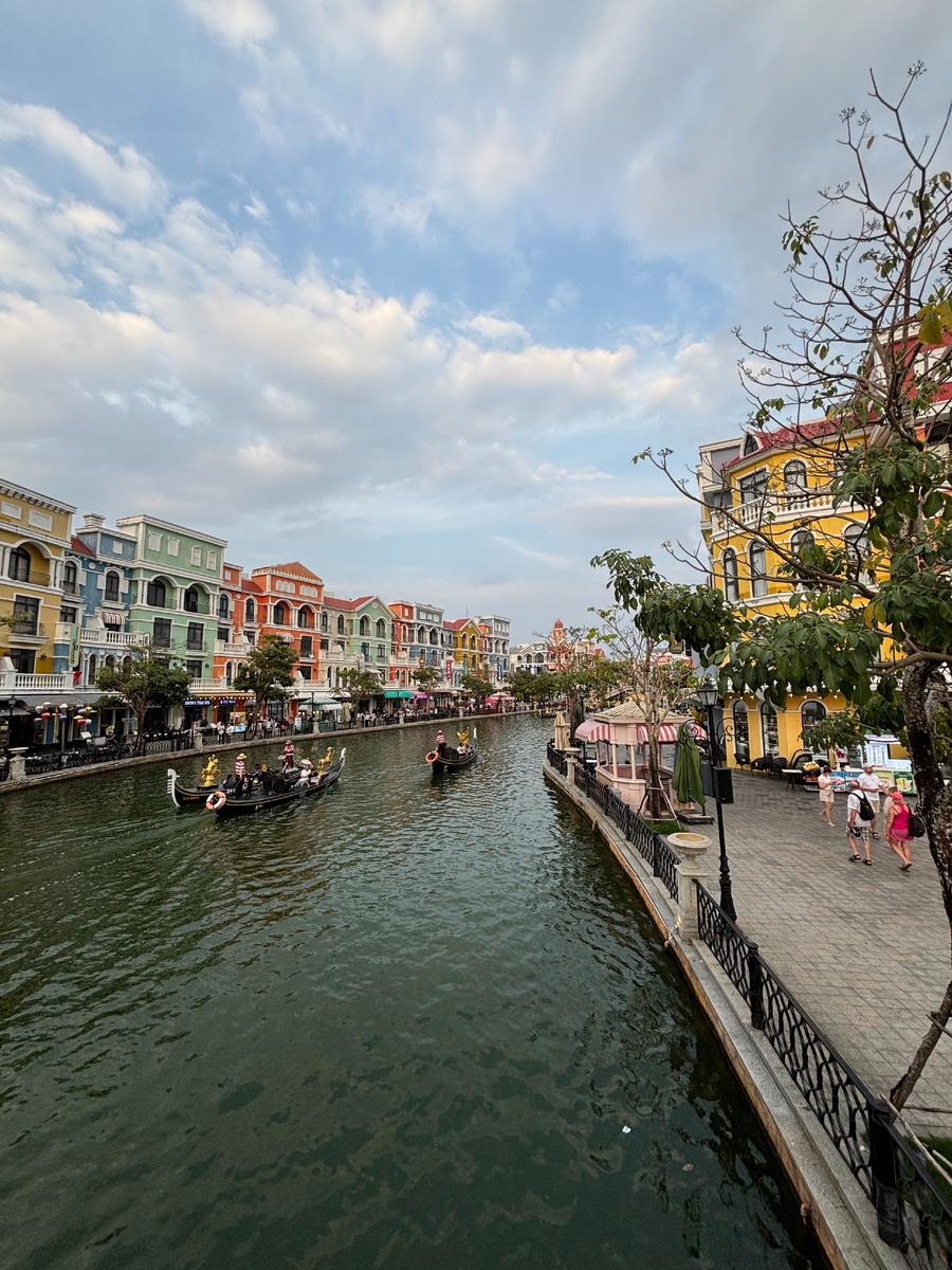Представьте: вы прилетаете во Вьетнам, едете по тропическому острову — пальмы, жара, байки… и вдруг оказываетесь в «Венеции». Каналы, гондолы, разноцветные дома, мостики. Казалось бы — Европа. Но нет. Этого места не существовало ещё несколько лет назад. Иллюзия, в которую легко поверить Grand World на Фукуоке — один из самых странных туристических проектов во Вьетнаме. С первого взгляда он впечатляет. Настолько, что многие туристы сначала не понимают, где они вообще находятся. Но правда в том, что это полностью искусственный город. Не исторический район. Не старый центр. А декорация, построенная с нуля. И именно здесь начинаются споры. Одни говорят: «Это красиво, и неважно, что ненастоящее». Другие — «Зачем ехать за тысячи километров ради декораций?» Ошибка, которую совершают почти все Большинство приезжает сюда днём. Мы приехали ближе к 17:00, может быть даже позже. Если бы мы поехали еще раз, то сделали бы это к 20:00. За такое длительное время там устаешь. После шоу у меня уже отвал