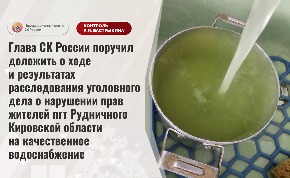 Глава СК России поручил доложить о ходе и результатах расследования уголовного дела о нарушении прав жителей пгт Рудничного Кировской области на качественное водоснабжение