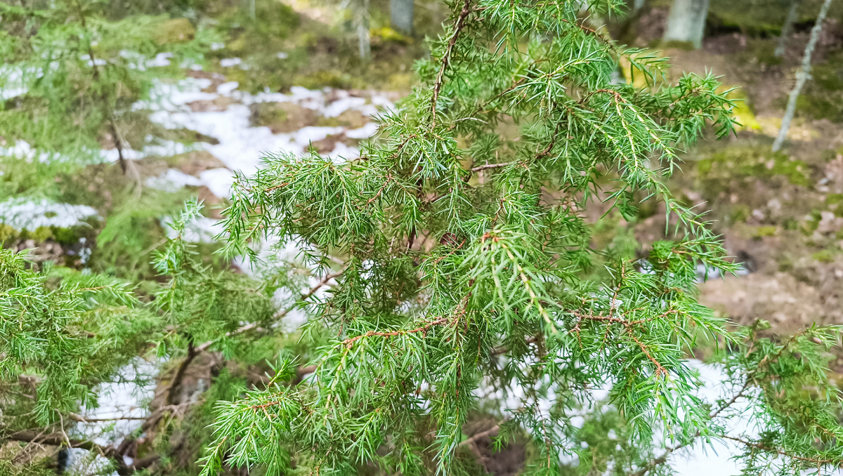 К стандартной порции можжевеловых бусин мы срезаем свежую веточку сосны или ели (длиной буквально со спичку).