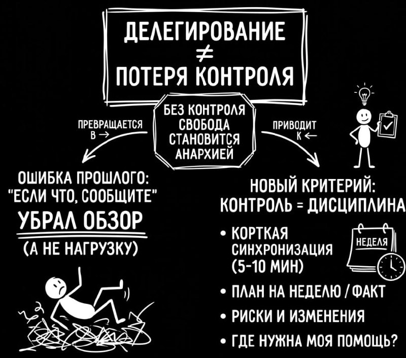 #делегирование #Делегирование_Ошибки В какой-то момент я сам начал путать контроль с микроменеджментом. Мне казалось, что если я лишний раз вмешиваюсь, значит я мешаю. Если я задаю вопросы, значит я не доверяю. Если я прошу цифры и факты, значит я становлюсь "душным" руководителем. И я пошел в эту ошибку. Я убрал контроль почти совсем. Оставил только удобную для всех формулу: "если что, сообщите". Сначала мне даже казалось, что это зрелая модель управления. Я не давлю. Я не лезу. Я даю людям свободу. А потом я увидел, что без моего регулярного ритма бизнес не начинает работать сам по себе. Он не пишет мне первым, что где-то копится проблема. Он не предупреждает автоматически, что контекст меняется. Он просто живет. Каждый день. И каждый день внутри него принимаются решения. И в какой-то момент я понял неприятную вещь. Когда я убрал контроль, я не убрал нагрузку. Я убрал себе обзор. Я начал выпадать из контекста. Я стал позже видеть риски. Позже понимать, что изменилось. По