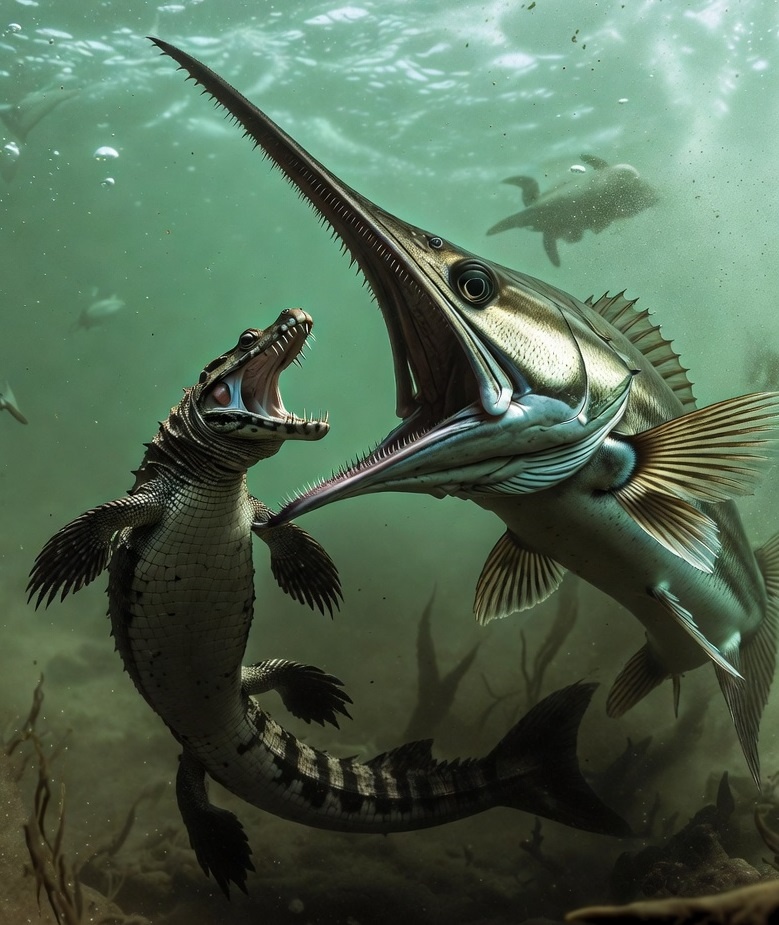 Палеонтологи обнаружили в запасниках Музея естественной истории в Чикаго (США) уникальный образец. В шейном позвонке поликотила (морской рептилии длиной 4 метра) застрял крупный зуб. Исследование опубликовано в Journal of Vertebrate Paleontology. Изображение: Grok ai Образец из меловых отложений Алабамы, формация Мурвилл-Чолк (Mooreville Chalk) заметил профессор Кристофер Брошу (Christopher Brochu) из Университета Айовы (США), просматривая коллекцию. С помощью компьютерной томографии два студента Университета Теннесси создали 3D-модель зуба и идентифицировали нападавшего. Это был хищная рыба ксифактин (Xiphactinus). Позвонки и томограммы поликотила, в нижней части виден зуб ксифактина, вонзившийся в кость. Источник: scitechdaily.com Ксифактин был огромной рыбой, но обычно заглатывал добычу целиком (известны находки «рыбы внутри рыбы»). В данном случае речь не о попытке съесть поликотила, а о смертельной атаке. Зуб вонзился в шею рептилии. Это место, где проходили трахея, пищевод, крупн