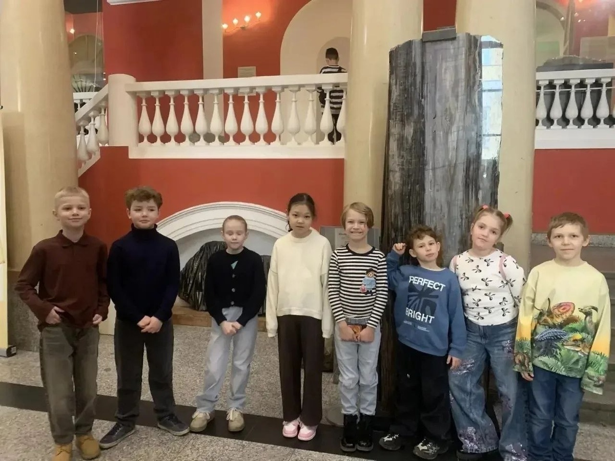 В последний день каникул ученики 2-Б класса посетили Государственный Геологический музей им. В.И.Вернадского. С древних времен человек использовал камни: добывал огонь, делал ножи, топоры, наконечники для стрел, украшения. Укрываясь в пещере, древние люди рисовали на ее стенах минеральными красками, которые тоже изготавливали из камней. Об этих интересных фактах ребята узнали на экскурсии «Как человек знакомился с камнем». Во время экскурсии мы познакомились с удивительными свойствами кварца и его видами, увидели первые каменные изделия, рассмотрели редкие виды малахита, изумруда, опала, а также гигантские самородки других минералов, изучили информацию о каменном строительстве и видах камней в архитектуре. С особым интересом ребята слушали рассказ экскурсовода о драгоценных камнях, узнали, из каких драгоценных камней изготавливаются украшения, рассмотрели их имитации и синтетические аналоги. Также ребятам посчастливилось рассмотреть гигантский соляной самородок и попробовать его