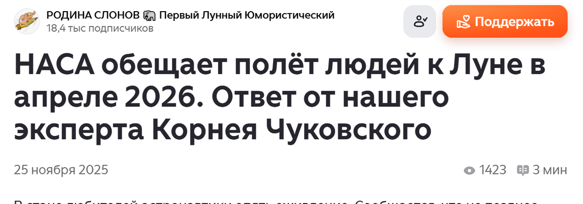 "Стало понятно, почему НАСА так спешила запустить свою миссию к Луне 1 апреля. Но нас не проведёшь - объяснение слишком очевидное", новая статья на канале "родина слонов", это американцы оказывается специально так подгадали, чтобы нам день космонавтики подпортить. Ну да, а как же февральские и мартовские отмены запусков? Ладно, ладно, уже догадываюсь, это они для того и отменяли, чтобы нам подсуропить! Вот какие негодяи!