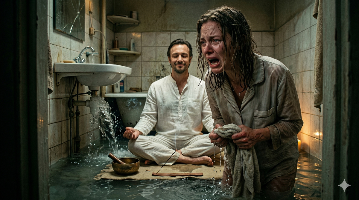 — Какое астральное путешествие, идиот?! У нас реальное наводнение в ванной! Вставай и бери разводной ключ!