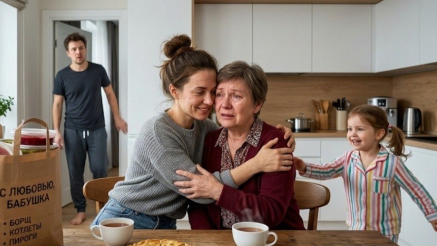 Маша выбежала и бросилась на шею свекрови. Та расплакалась ещё сильнее, прижимая внучку к себе.