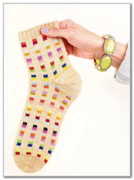 Примечание: вы можете вязать каждый раппорт схемы разными цветами или придерживаться одной и той же двухцветной комбинации по всей длине носка.