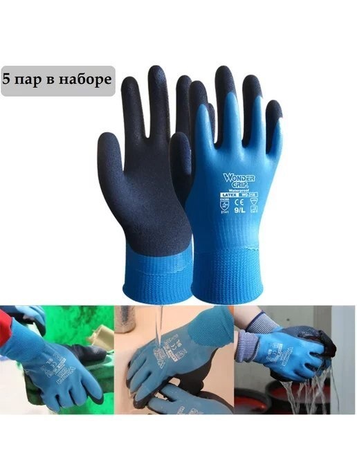 📉 125₽ 544₽ 🛍 Перчатки рабочие с обливом садовые хозяйственные, 5 пар / Max-Pro