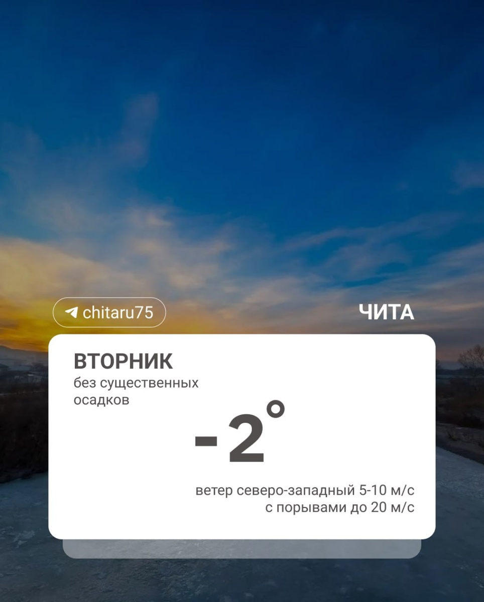 Ночью в Чите было похолодание до -7 градусов. По Забайкалью ночью прошёл снег, местами сильный. Температура опускалась до -16 градусов.