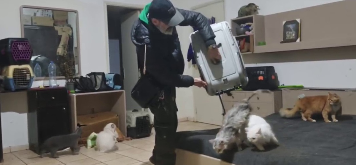 В телеге выложила видео. Тут не знаю, загрузится ли - позавчерашнее так и не появилось. Может быть, потом, когда они загрузку починят, покажу. Тем, у кого Телега не едет. В некоторых переносках по 4-5 взрослых котов было напихано. Чтобы перевезти за один раз. Бедные. Натерпелись. В этой переноске было 4... Человека с котами зовут Висам. Он ветеринар. Потом еще и моих котов посмотрит. Может, кому чего надо. У него сейчас на попечении 25 собак и триста с чем-то котов. Некоторые его личные. Других попросили подержать у себя хозяева. Остальные подобраны в опасных районах. Ко мне привез штук 20 (сколько - сам не знает, утром пересчитаем), которых сейчас совсем некуда деть. Чтоб он в ночи не мотался туда-сюда, выделила ему подушку и одну из кроватей. Одеяло у него свое есть, он иногда вынужден спать в машине. У меня 4 спальни и 9 стационарных спальных мест. И три санузла (привет Кристине). Он со своими котами в одном крыле дома, я во втором. Всем комфортно. Утром проснемся и дообору