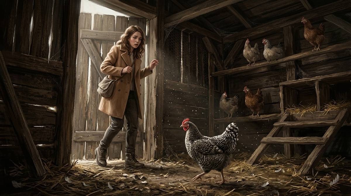 Нина пошла. Курятник был маленький, низкий, тёмный, и пах он так, как Нина не могла описать никакими словами. Куры сидели на насестах и смотрели на неё. Все шестнадцать. Или сколько их там было. У них были жёлтые глаза и они не моргали.