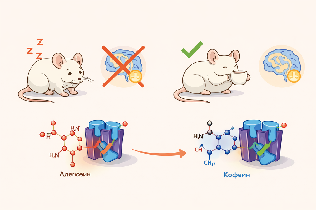 Учёные из Национального университета Сингапура (NUS) выяснили, что кофеин не только помогает бодрствовать, но и может восстанавливать социальную память, нарушенную хроническим дефицитом сна. Результаты опубликованы в журнале Neuropsychopharmacology. Исследователи сосредоточились на зоне CA2 гиппокампа - области мозга, которая отвечает за социальную память (способность узнавать знакомых лица). Мышей лишили нормального сна. Они переставали узнавать родственников, которых видели раньше. Однако группа животных, которые в течение недели получали регулярные дозы кофеина, даже при недосыпании сохраняла высокие показатели памяти. Более того, когда кофеин вводили непосредственно в ткани мозга уже после бессонницы, он помогал восстановить передачу сигналов между нейронами. При недосыпании в мозге накапливается аденозин - вещество, которое не только вызывает сонливость, но и подавляет нейронные цепи, отвечающие за память. Кофеин блокирует аденозиновые рецепторы, не давая ему разрушать эти связи.
