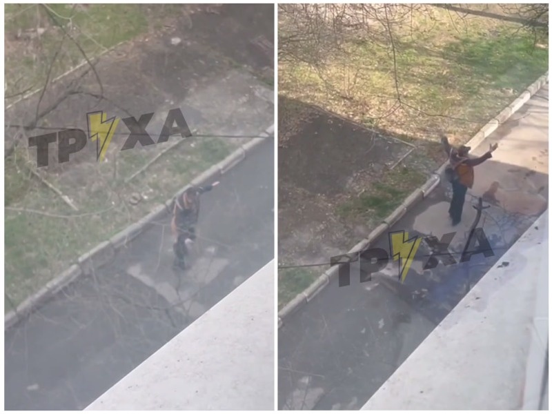 По данным источников, все произошло примерно в 9:00 во дворе одного из районов областного центра. На кадрах видно, как некий мужчина в куртке и с рюкзаком, подняв руки к небу, поет песню. Примечательно, что он делал это на ходу, и даже несколько раз обернулся вокруг себя. Видимо, хотел, чтобы все жильцы дома услышали.