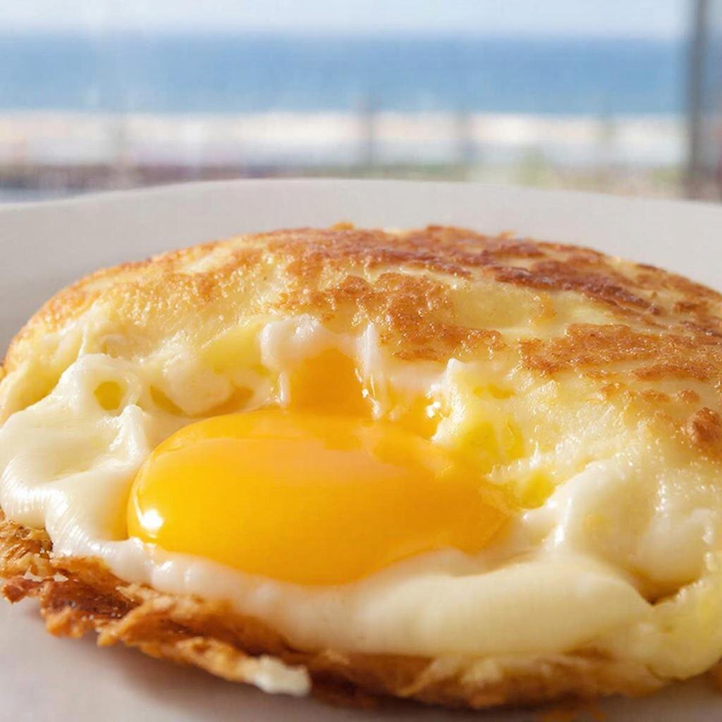 Представьте: воздушная, слегка хрустящая снаружи и тающая внутри белковая «шапка», а в центре — жидкий золотистый желток. Когда вы разрезаете его ножом, желток красиво растекается, смешиваясь с сырной пенкой. Выглядит это как блюдо из дорогого ресторана с видом на море. А по вкусу — нежный, сытный, но при этом лёгкий завтрак.
