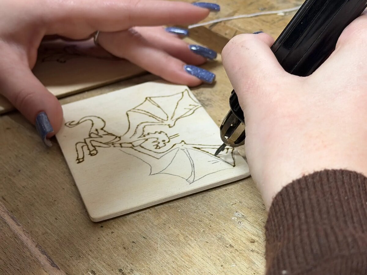 Мастер-класс по пирографии прошёл в Тульском ремесленном дворе «Добродей». Посетители научились создавать изображения при помощи выжигателя. Участники мастер-класса могли выбрать готовый эскиз. Вариантов множество: тульские самовары, котики, драконы, фрукты. Можно было придумать и свой образ. Для работы нужны электровыжигатель и деревянная дощечка. Ведущий мастер-класса Евгений Петров рассказал: — Выжигание в основном выполняется по березе. Это самый классический фундамент для такой работы. Первым делом понравившийся рисунок переносят на дощечку с помощью карандаша и копировальной бумаги. И только затем гость начинает работу пирографом. Участница мастер-класса Дарья Дутикова отметила: — Когда первый раз берешь в руки горячий инструмент, конечно же, изначально возникает небольшая тревога из-за того, что можно получить ожог. Но постепенно рука начинает привыкать и ощущается так, как будто ты просто держишь ручку или карандаш в руке. При желании получившееся изображение можно раскрасить.