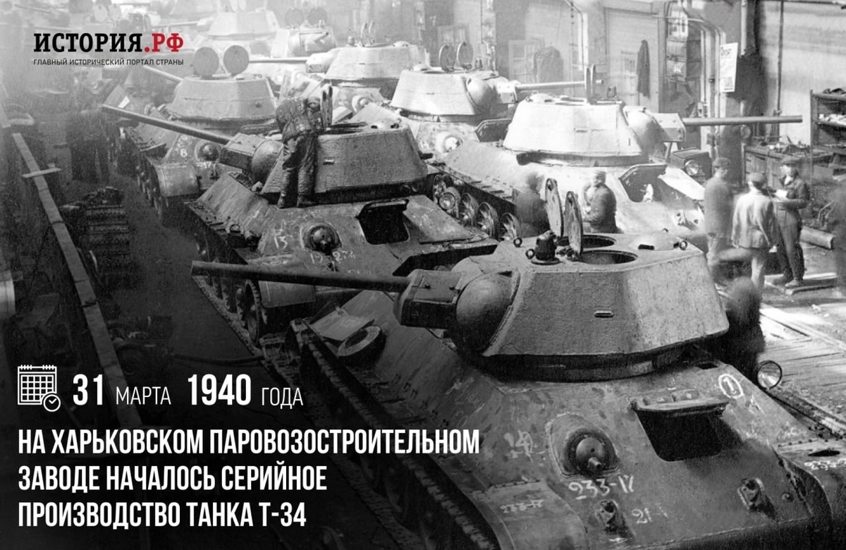 Начато серийное производство танка Т-34. До конца 1940 г. выпущено 115 машин. Т-34 – лучший танк Второй Мировой войны по совокупности характеристик #ПамятныеДатыВоеннойИсторииОтечества #ДеньВИстории #ГодЗащитникаОтечества #80ЛетВеликойПобеды Источник: https://vk.ru/wall-216215303_3165 Подпишитесь на наши группы ВКонтакте, в Одноклассниках, в Телеграм - читайте, смотрите и комментируйте информационные материалы, предлагайте свои! Источник: Открыть