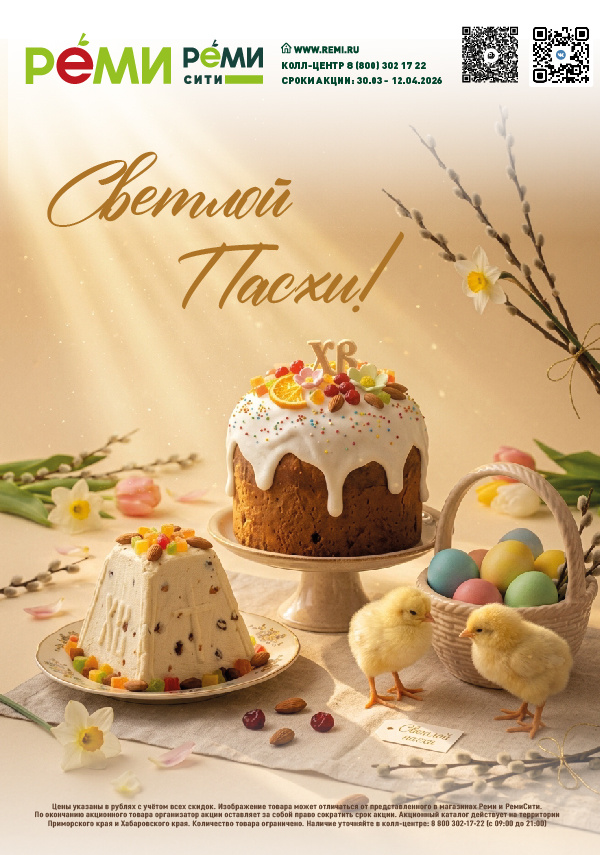 Светлый праздник Пасхи — 12 апреля! Подготовьтесь к нему вместе с нами. В нашем КАТАЛОГЕ вы найдёте полный ассортимент товаров для праздничного стола: от форм для куличей и декора до необходимых ингредиентов, посуды и товаров для качественной уборки. На всё, собранное в нём, с 30 марта по 12 апреля действуют скидки, и вы можете ознакомиться с этими товарами уже сейчас!