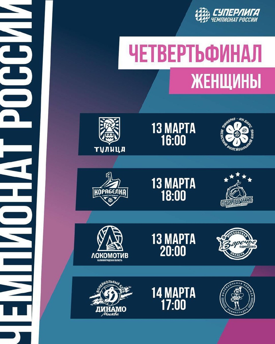 Вторые матчи 1/4 финала у женщин стартуют сегодня
