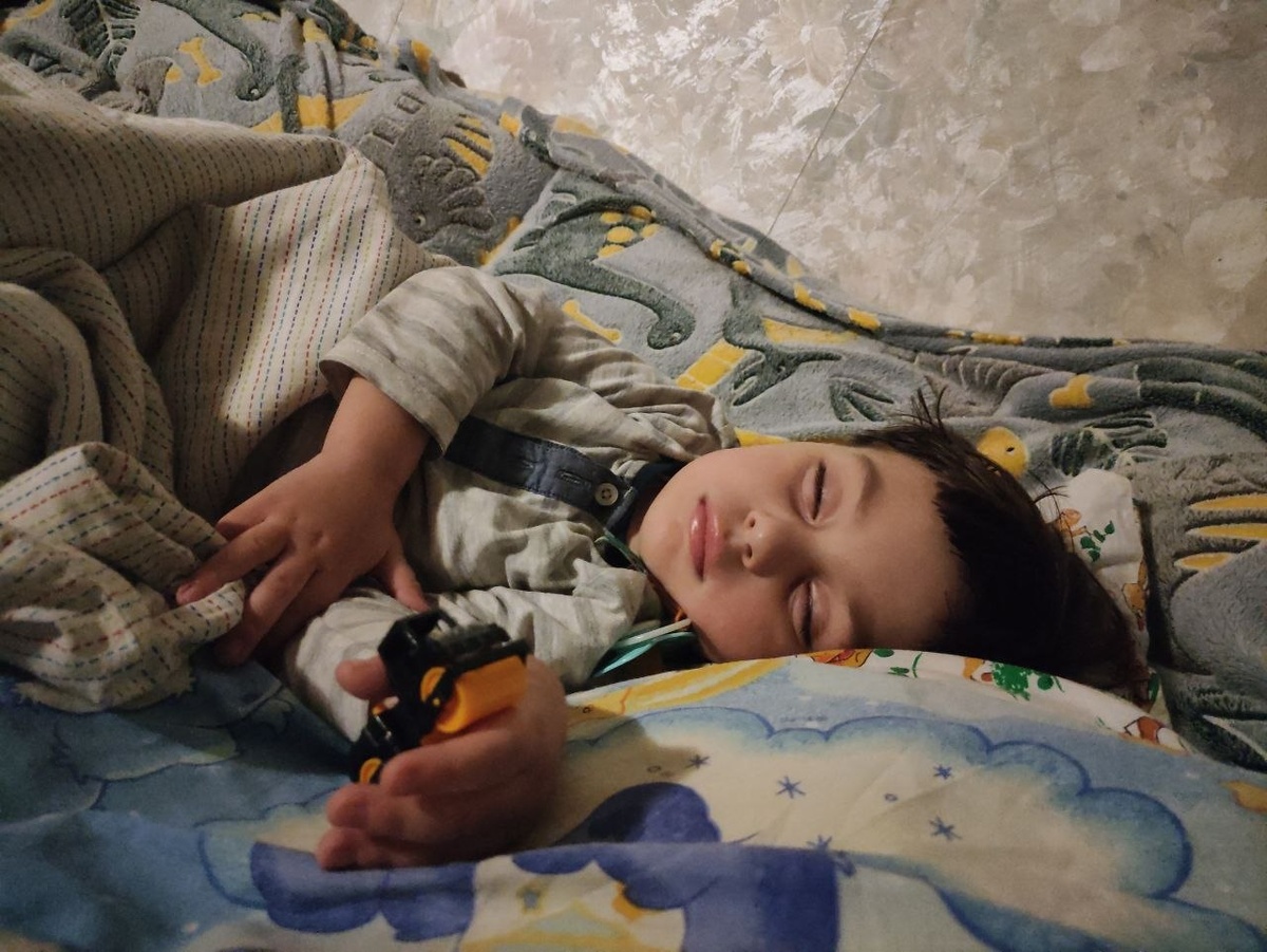 Спит и не выпускает с рук коток Макс, потому что он - машинка, которая умеет делать массаж