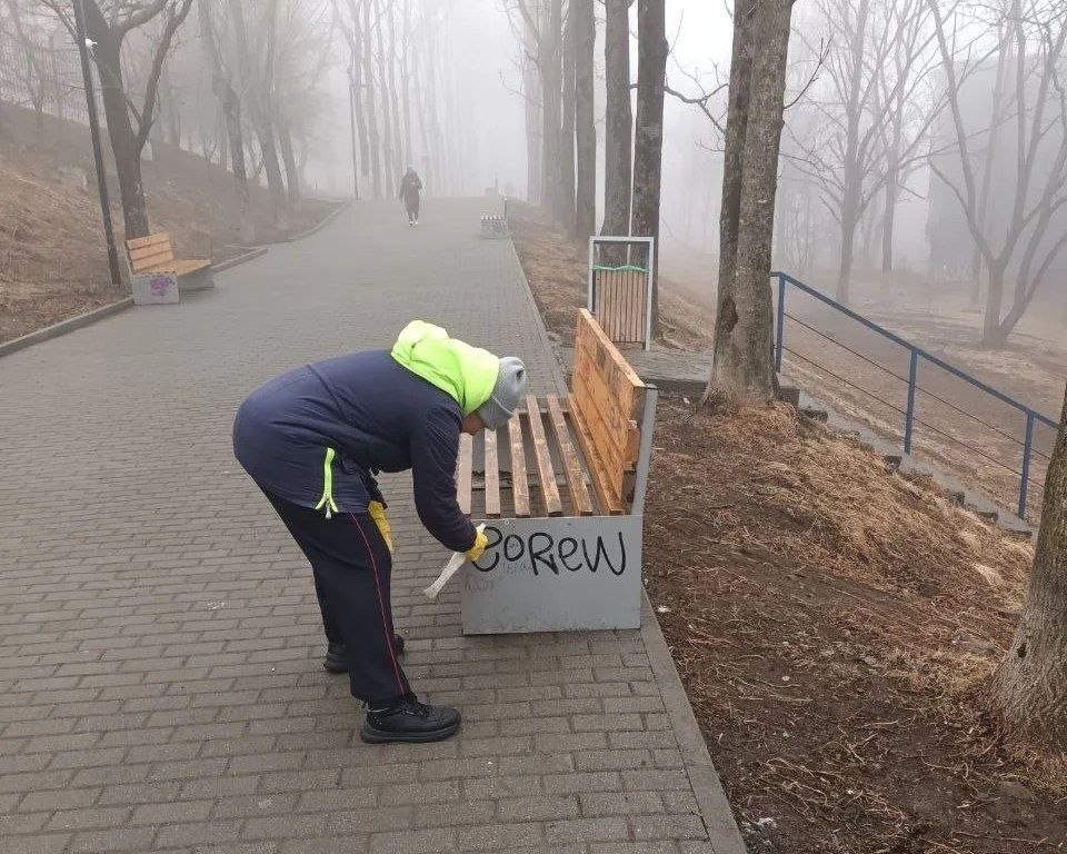🧹 За минувшую неделю санитарные службы «Зелёного Владивостока» 🔸 Провели комплексную уборку на аллее Космонавтов.