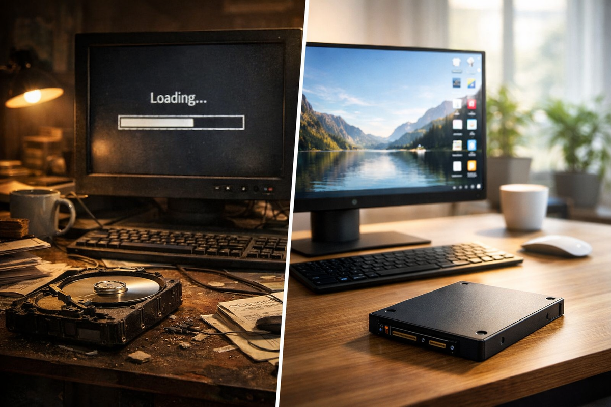 старый HDD. Решили не гадать — а проверить. Сделал максимально честно: Никаких «подкрутил настройки». Только диск поменял. До (HDD):