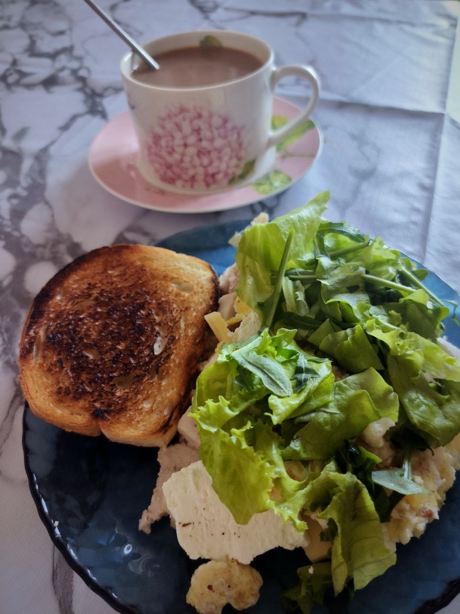 🌸 На завтрак :кусочек домашней ветчины, кусочек лёгкого сыра, одно жареное яйцо, немножко творога из пачки, сверху зелень и цикорий с молоком. 🌿 (Я люблю такое, когда разные вкусны, а по количеству не переем, тк всего по чуть-чуть, организм почувствует разное сочетание и успокоится до самого обеда 🤣) Если не откроется , то https://max.ru/c/-72412965110013/AZ1B8JNzK5U